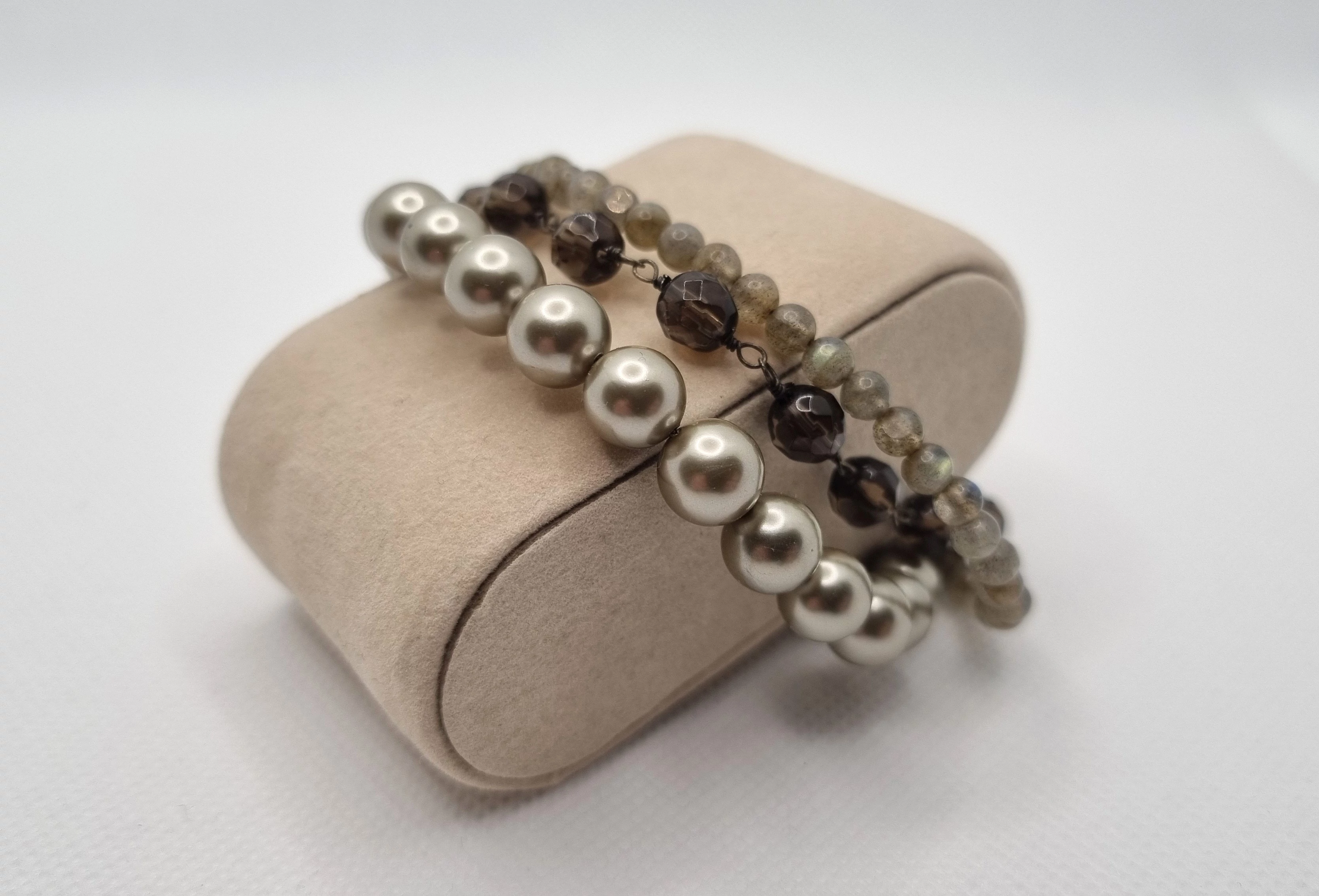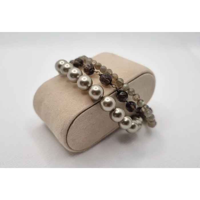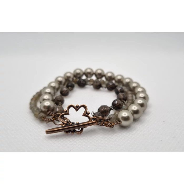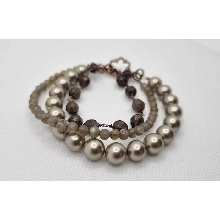 Füstkvarc-labradorit-kagyló többsoros ásvány karkötő