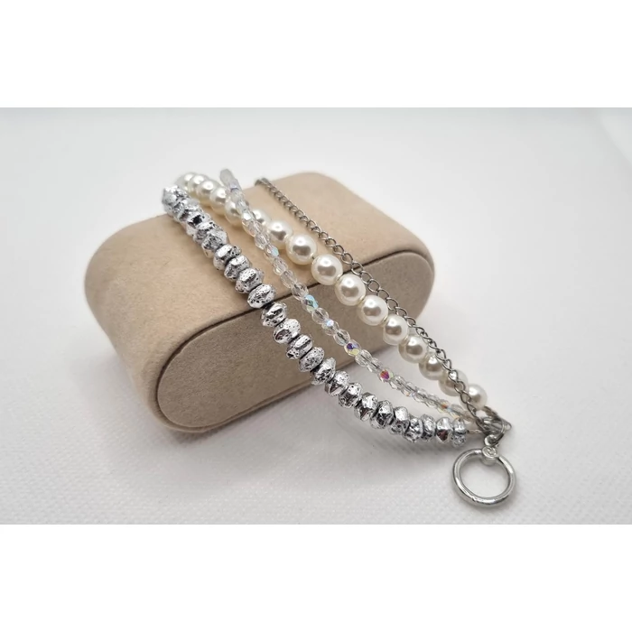 Lávakő-csiszolt gyöngy többsoros ásvány karkötő (18)
