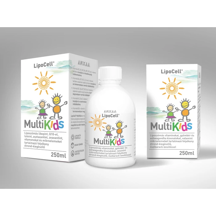 LipoCell MultiKids termék liposzómákba (mikroszkópikus kapszulák) zárt vitaminokat és növényi kivonatokat tartalmaz, így jelentősen megnőhet az aktív hatóanyagok felszívódása a bélrendszerben.