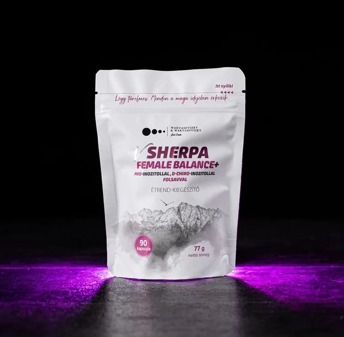 A vSherpa Female Balance+ egy célzottan nők számára fejlesztett prémium étrend-kiegészítő, komplex formula, amely kifejezetten a nők hormonális egyensúlyának, egészséges anyagcseréjének és termékenységének támogatására készült. A készítmény középpontjában a tudományosan meghatározott, ideális 40:1 arányú mio-inozitol (2000 mg) és D-chiro-inozitol (50 mg) kombinációja áll. Ez az arány és hatóanyag-mennyiség a legújabb klinikai vizsgálatokban a leghatékonyabbnak bizonyult a PCOS (policisztás ovárium szindróma), az inzulinrezisztencia és a hormonális egyensúly támogatásában.
